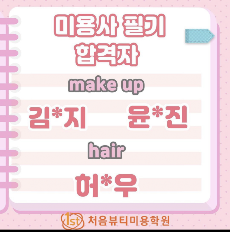 2023 국가자격증 합격자 본문 안녕하세요! 처음뷰티미용학원입니다~~ 오늘은 !! 국가자격증 합격자가 발표되는 날인데요!! 우리 학원에서도 좋은 소식이 들려오네요 ㅎㅎ 많이 축하해주세요~~ 목록 이전글2023 국가자격증 "원 패스 합격자" 23.09.21 다음글2023년 국가자격증 합격자 23.06.22 댓글목록 댓글목록 등록된 댓글이 없습니다.