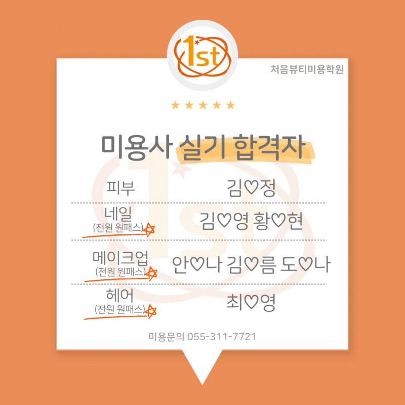 처음뷰티미용학원 에서 미용 국가자격증 취득에 한발짝 다가가 보세요~~!!