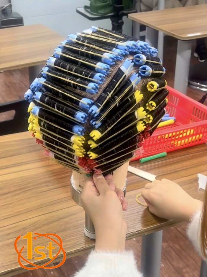 집중력이 흔들리지 않는 모습이 돋보였던 날입니다! 와인딩 후 전체 파마 결과를 확인하는 모습입니다!