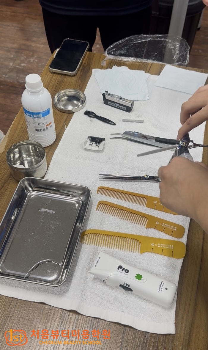 시간을 가졌는데요~~ 이용사 실기시험의 첫 번째 과제는 ‘소독하기’예요. 위생과 안전은 모든 미용 실무의 기본이기