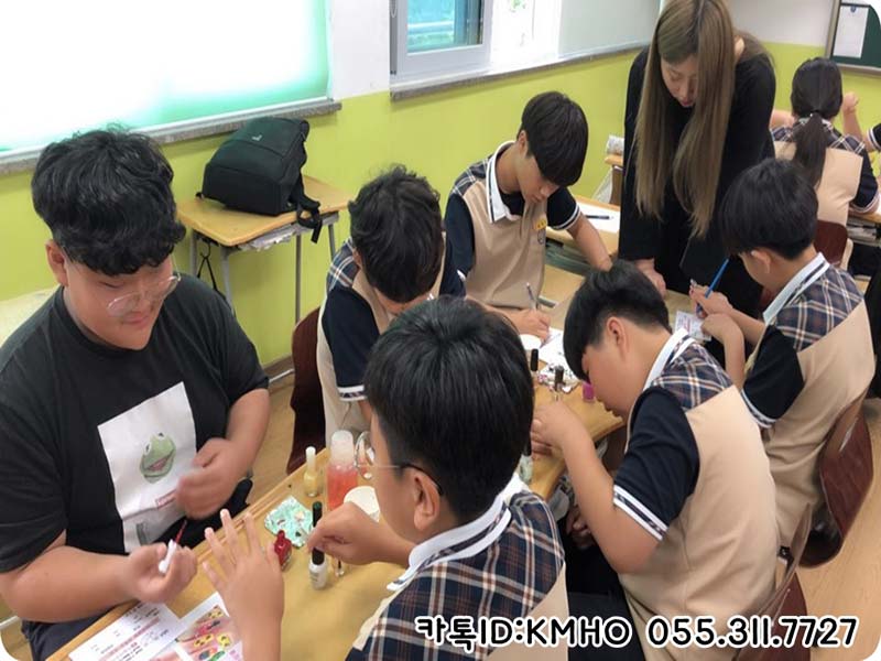 두명씩 서로 친구들한테 네일아트를 해주었습니다~