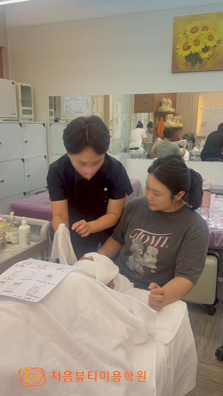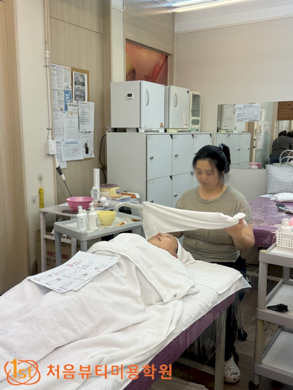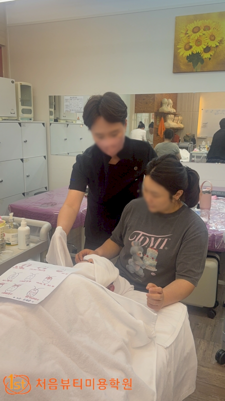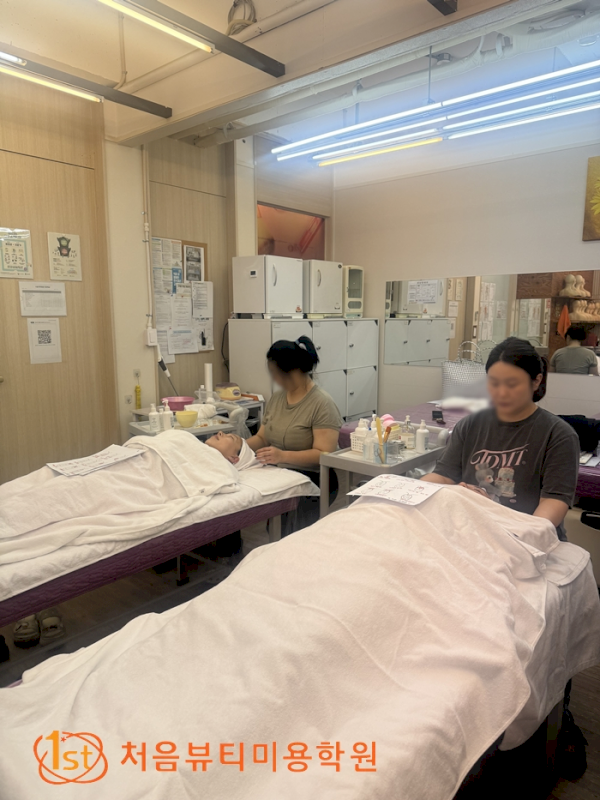 클렌징과 기초 테크닉부터 꼼꼼하게 배우고 있답니다!! 학생분들이 실제 모델을 대상으로