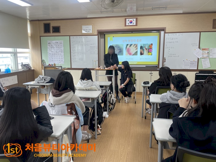 "김해중앙여중" 미용체험 특수분장 수업 현장 > 처음뷰티 갤러리
