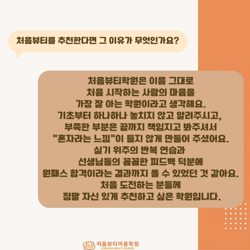 처음뷰티미용학원 피부미용 자격증 합격자 인터뷰