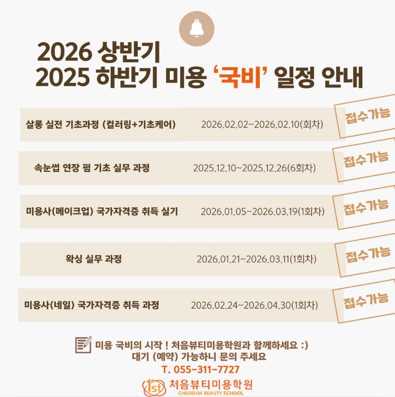 2026 상반기 미용국비과정 일정입니다~~