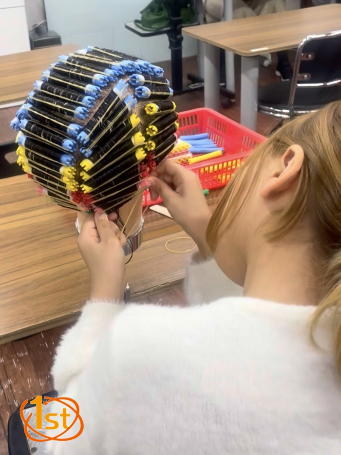 집중력이 흔들리지 않는 모습이 돋보였던 날입니다! 와인딩 후 전체 파마 결과를 확인하는 모습입니다!