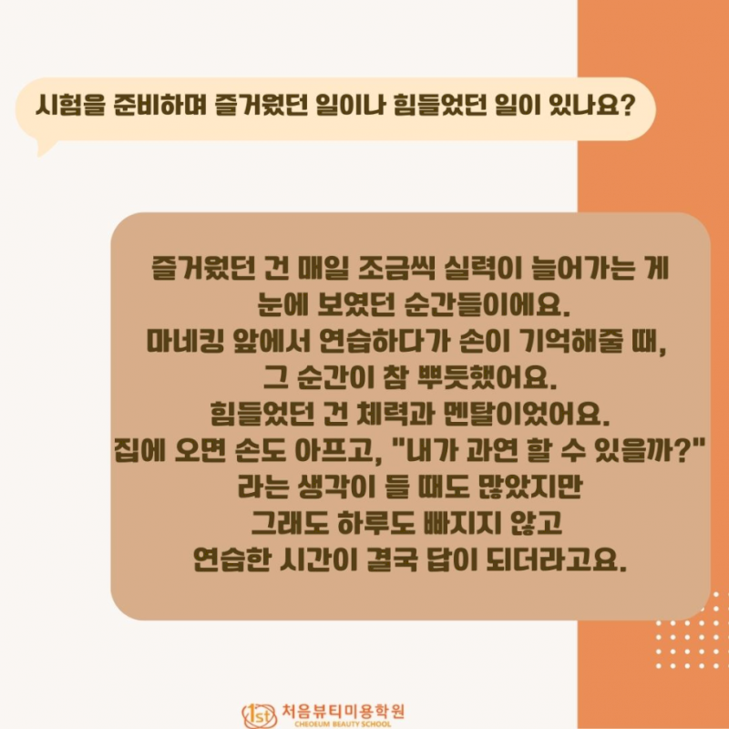 우리 학원 학생들의 진심 어린 노력과 열정이 담긴 인터뷰를 통해, 뷰티 자격증을 준비하는 분들에게도 큰 힘이