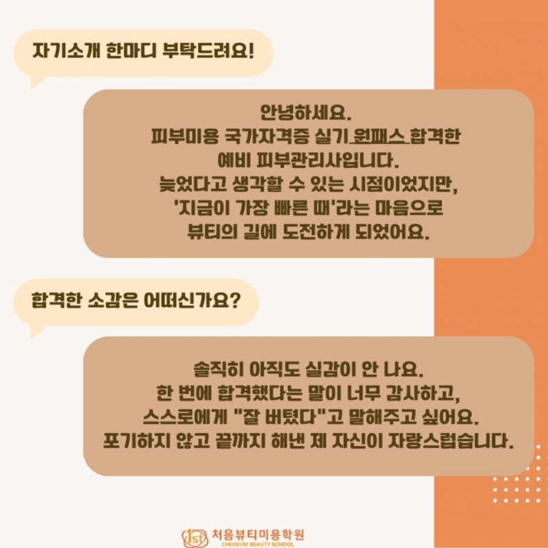처음뷰티미용학원 피부미용 자격증 합격자 인터뷰