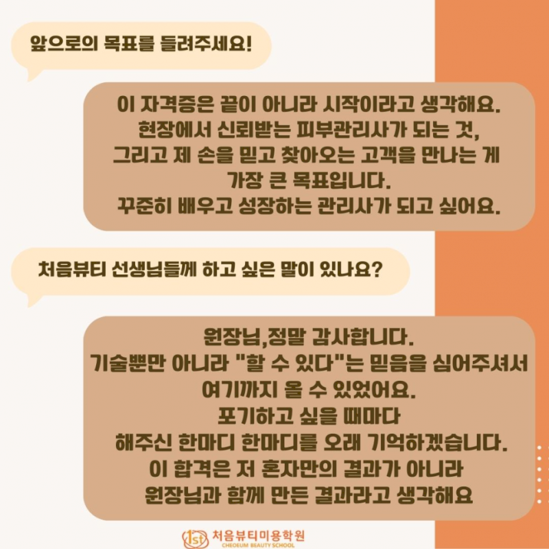 신뢰받는 피부관리사가 되겠다는 우리 수강생분의 목표가 정말 자랑스럽습니다!